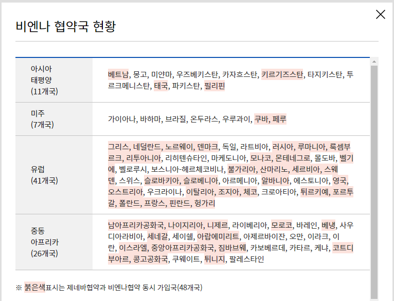 - 제네바 협약에 가입한 103개국과 협약 체결 국가(예: 대만, 베트남)에서 사용 가능합니다.