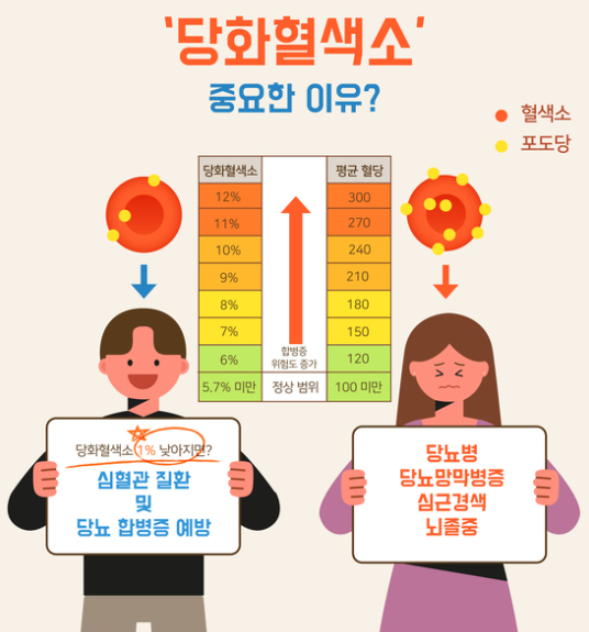 이 수치는 최근 몇 개월간의 평균 혈당 상태를 보여주기 때문에, 단순한 혈당 측정보다 장기적인 혈당 조절 여부를 파악하는 데 더 효과적인 검사입니다.
