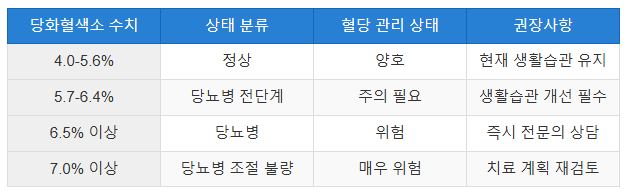 각국의 기준은 서로 다를 수 있지만, 궁극적인 목표는 당화혈색소 수치를 안정적으로 유지하여 당뇨병으로 인한 합병증 발생을 최소화하는 데 있습니다.