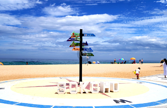 이곳은 단순한 해수욕장에 머무르지 않고 속초의 자연과 감성을 담아낸 포토존들도 다수 설치되어 있어 사진 찍기에도 매우 좋은 장소입니다. 탁 트인 바다를 배경으로 한 감성적인 포인트들이 여행의 재미를 더해줍니다.