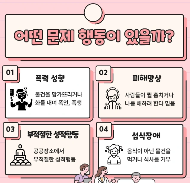 - 공공장소에서의 성적 노출, 부적절한 신체 접촉 등 성적 문제 행동이 드러나는 경우