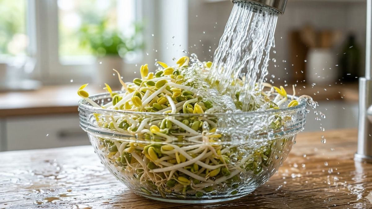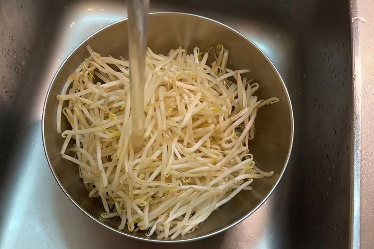 콩나물은 흐르는 물에 여러 번 헹궈 불순물을 제거해줍니다. 뿌리 부분은 그대로 사용해도 되지만, 깔끔한 식감을 원한다면 일부 제거해도 좋습니다.