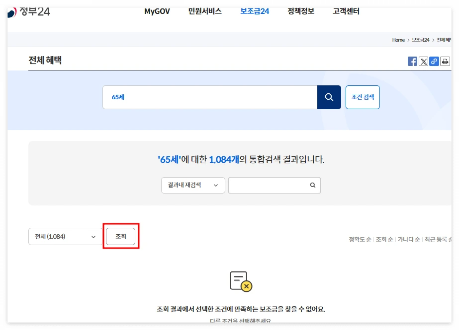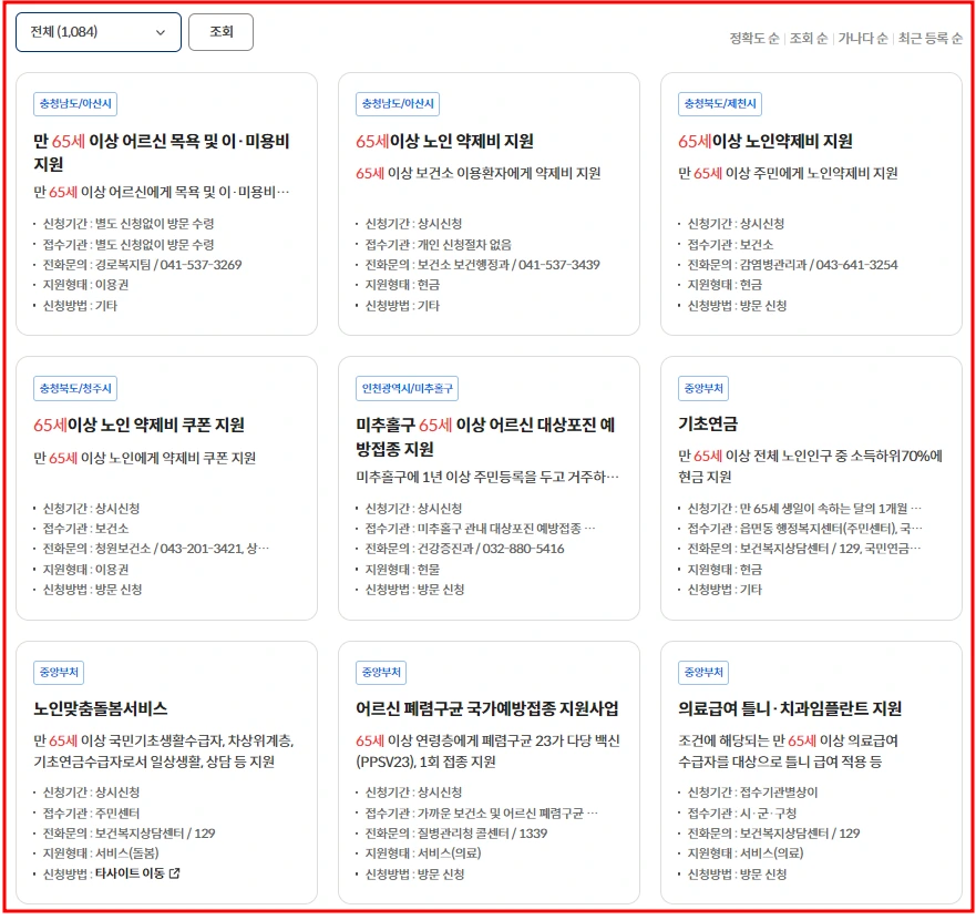 먼저 정부24 홈페이지를 통해 65세이상 노인 혜택을 손쉽게 검색하실 수 있습니다.