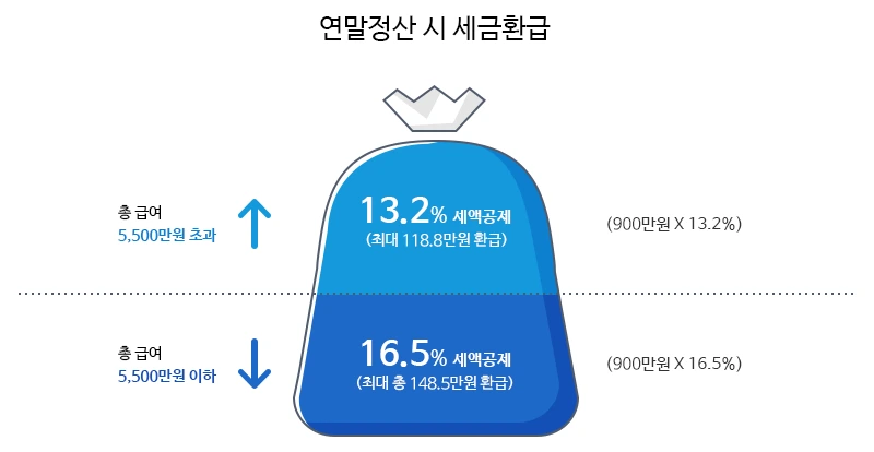 - 공제율은 소득 수준에 따라 달라집니다. 총급여 5,500만 원 이하(종합소득 4,000만 원 이하)는 16.5%, 초과 시 13.2%의 세액공제가 적용됩니다.